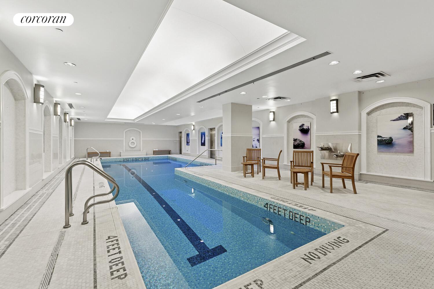 Building amenities include a 24-hour concierge and doorman , indoor pool , fitness center , spa and steam rooms , resident lounge , catering kitchen , recreation room , private storage, and on-site parking .