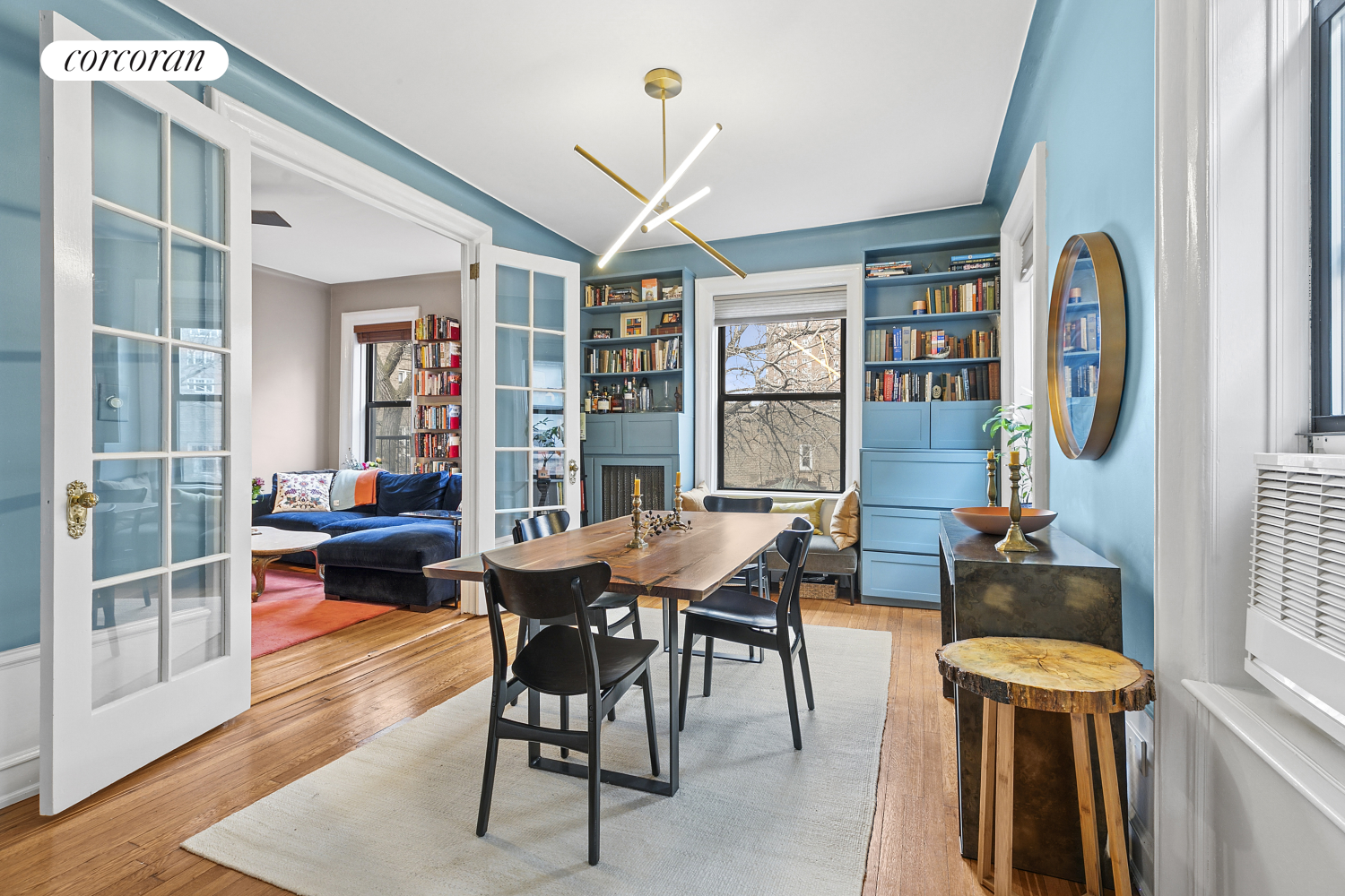 Come live amongst the treetops in this beautiful top floor, five room, corner apartment overlooking the mighty Hudson River, with seasonal river views. Enjoy the peaceful solitude in this light filled home above the co-ops tree-laden backyard. There is a formal dining room with built-in desk, file storage, and original restored French doors. The gourmet windowed kitchen is ready for you to prepare meals for friends and family with a Professional Thermador five burner gas range, XO designed Italian range hood with charcoal filters, double door stainless steel Liebherr refrigerator with double drawer bottom freezer, stainless steel dishwasher, wine refrigerator, deep stainless steel drop-in sink, granite countertops, white marble subway tile backsplash, custom maple white cabinets and dovetail drawer construction. Freshly painted, this spacious immaculate home has nine-foot ceilings, hardwood floors, abundant closet space with custom organizers, Shade Store made to order window treatments, updated electrical, and specialized lighting and ceiling fans throughout.