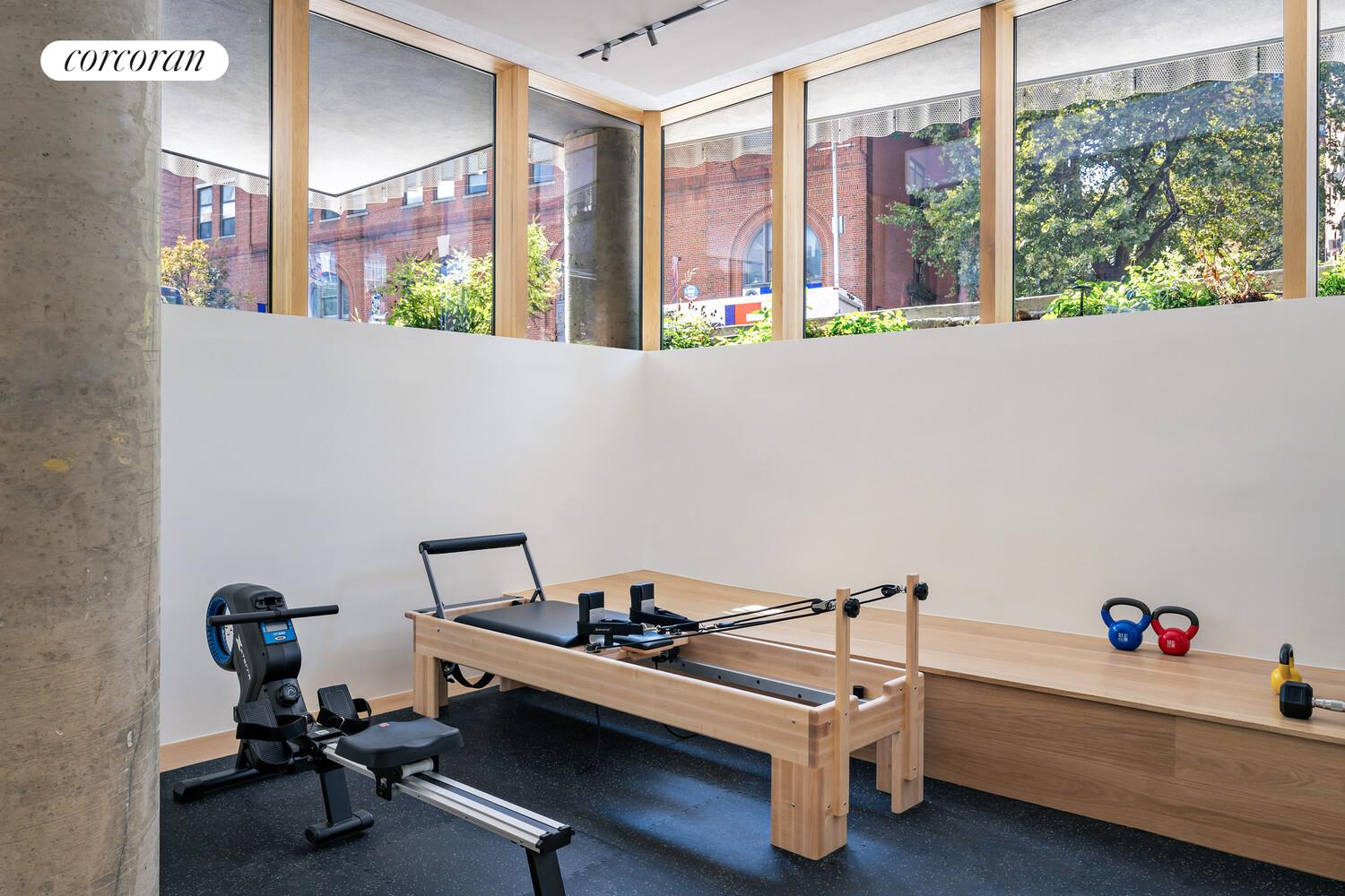 Beyond the home itself, residents enjoy a curated collection of amenities at Nine Chapel-a residents' lounge for work or relaxation, a fitness studio with pilates reformer, bike storage, and a ButterflyMX virtual doorman system providing both ease and security.
