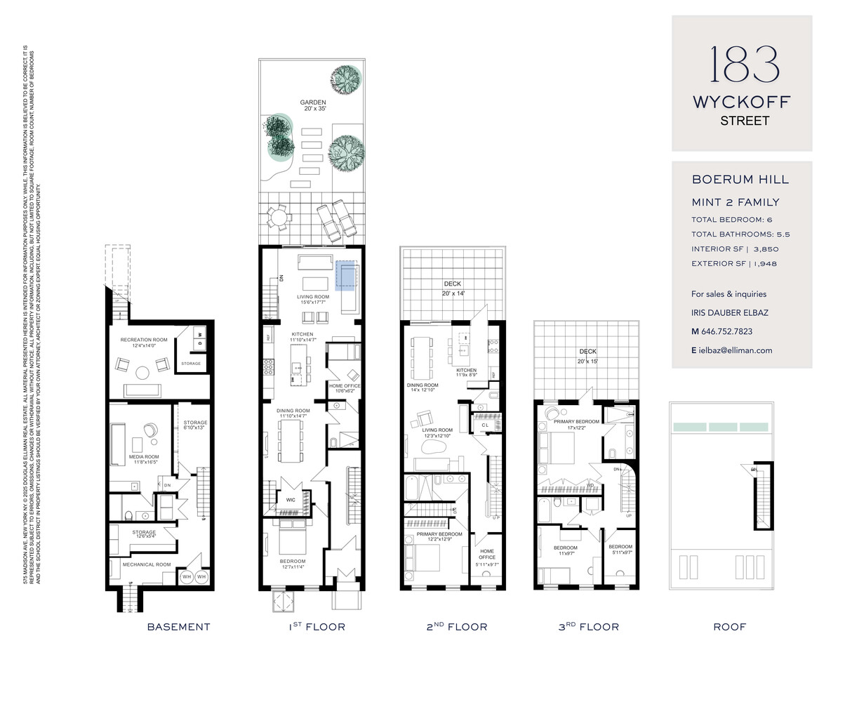 The upper residence offers three bedrooms, two and a half baths, and an extraordinary amount of private outdoor space across multiple levels. Sun-filled living areas connect to expansive decks on every floor, ideal for morning rituals, alfresco dining, and warm evening lounging. An efficient Italian kitchen with similar finishes and appliances. Bedrooms are generously scaled, the layout is impeccably efficient, and natural light floods every room. A true indoor-outdoor experience in the heart of Brooklyn. An architectural custom staircase ascends to a vast private roof deck with sweeping Manhattan and Downtown Brooklyn skyline views - a true crown jewel and a rare luxury in Boerum Hill.