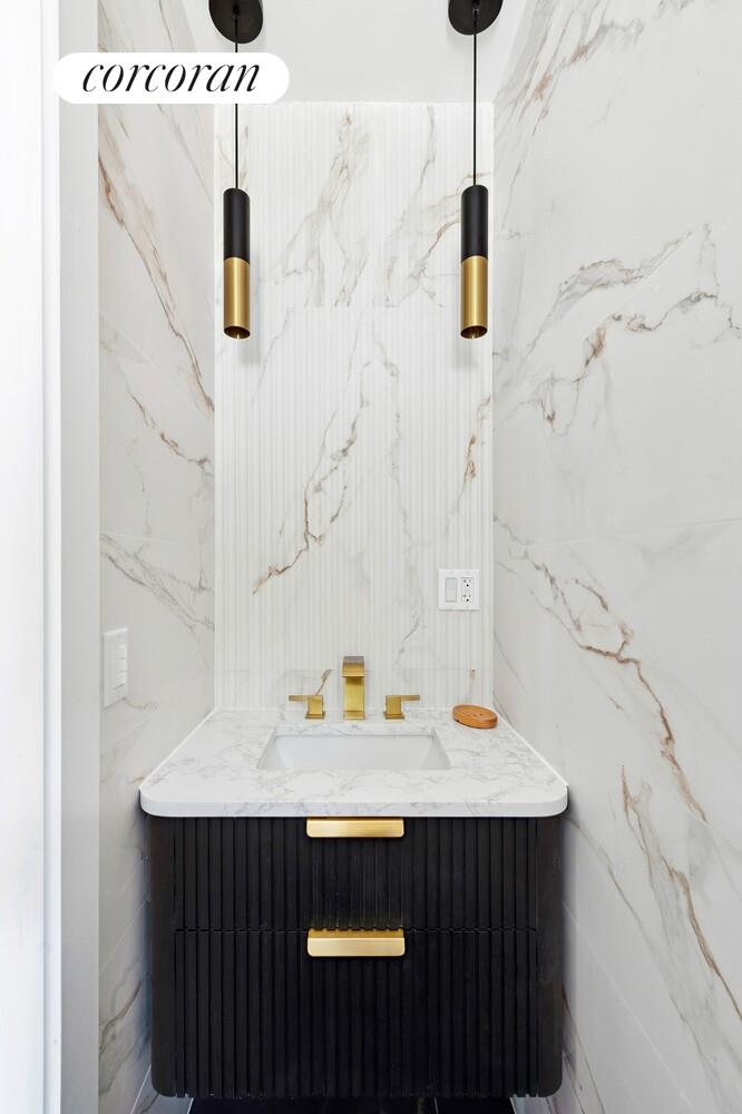 Completely rebuilt from the inside out-new plumbing, electrical, HVAC, windows, and doors-this home is truly move-in ready as you will be the first to occupy. Select white oak floors flow throughout the entire home, leading to a sleek chef's kitchen with white oak and black cabinetry, black Café appliances, a pot filler, hot water dispenser, and seamless stone countertops that extend into a full-height backsplash. A stylish main-floor powder room and a cleverly designed mini wet bar make entertaining effortless.