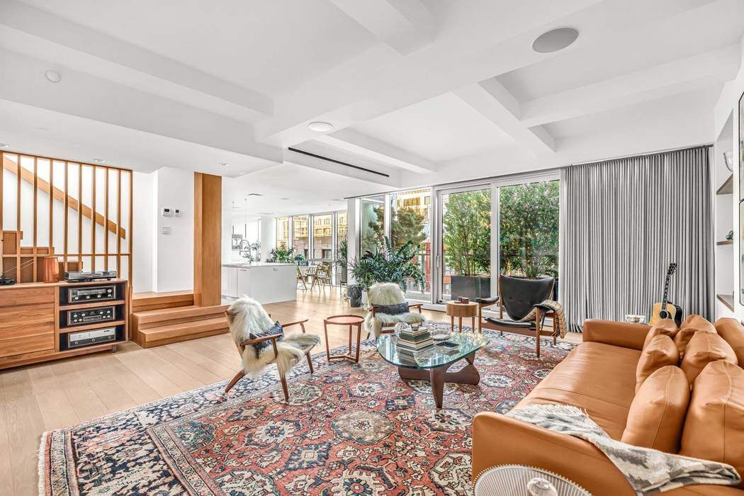 Welcome to Penthouse B at 200 Water Street, a special home located in Brooklyn's historic DUMBO neighborhood! A keyed elevator opens directly into the gracious entry foyer of this exceptional duplex penthouse. Floor-to-ceiling glass curtain walls with northern and southern exposures flood the home with natural light. The meticulous detailing throughout the interior and exterior of this home makes it truly remarkable. This stunning penthouse offers two bedrooms, two full baths, approx. 1,871 +/- sq. ft. of interior space, and approx. 1,695 +/- sq. ft. of private exterior space across multiple levels. The well-designed living room features custom-built white oak shelving, recessed cove lighting, and marble-topped storage cabinetry. The living room seamlessly opens to the first private garden terrace, offering impressive views and serving as a perfect continuation of the space. The full scale of this open space is prefect for entertaining or everyday living. Enjoy your favorite movies and music with an integrated sound system installed throughout the apartment. Additionally, there is a full-length, floor-to-ceiling retractable drapery for added ambiance and privacy. The open chef's kitchen boasts a large marble topped center island with counter seating, abundant storage options, custom cabinetry from Pedini and top-of-the-line appliances. These include a Sub-Zero refrigerator and wine fridge, a Wolf six-burner cooktop and oven, vented hood, Bosch dishwasher, and an integrated Sharp microwave. Countertops and backsplash made of Montclair Danby marble are complimented by a polished chrome Hansgrohe faucet. As you enter the generously sized primary suite, you’ll immediately appreciate the thoughtfully designed layout. This suite features a large custom fitted walk-in closet, Poulsen sconces on both sides of the bed, and a luxurious en suite bath. The en suite bath is highlighted by a glass shower enclosure with polished chrome Hansgrohe fixtures, hexagonal Blanco Carrara mosaic wall and floor tiles, a custom medicine cabinet with LED lighting, and a Duravit toilet. Also, on this level is the second bedroom, highlighted by custom closets, along with a conveniently located full bath, designed with the same high-end finishes as the primary bath. The architectural staircase leading up to the second level features a custom single-piece wood banister with recessed lighting and a Poulsen wall light. While upstairs, you will be struck by the incredible private rooftop terrace that wraps around two sides of the home, featuring a mature evergreen and hydrangea garden, a freestanding American Made grill, multiple unique seating areas, and breathtaking views that span across the Manhattan skyline. The gardens on both levels feature timed irrigation and lighting throughout. The sheer size and layout of the rooftop terrace can certainly cater to anyone’s needs whether it’s hosting a large gathering, an intimate dinner with a view, lounging on a sunny day, or enjoying beautiful sunsets. Rounding out this impeccable home is Lutron lighting, recessed lighting, central A/C, and a laundry area with convenient custom built-in storage along with a Samsung washer/dryer. Once a Brillo factory, 200 Water Street is the true definition of a daylight concrete factory and what DUMBO living is meant to be. 200 Water Street amenities include a full-time doorman, a beautifully landscaped sunken garden, access to a parking garage, a well-appointed gym, and bicycle storage. The curated lobby features 14-foot ceilings and teak wood accents. Enjoy close proximity to the stunning Brooklyn Bridge Park waterfront, cobble stone streets, the historic Empire Stores, exceptional dining and nightlife, a vibrant arts scene, and the unique appeal of one of New York City’s most exciting and beautiful neighborhoods. Just blocks away from the F/A/C trains and Water Ferry. Just one stop into Manhattan.