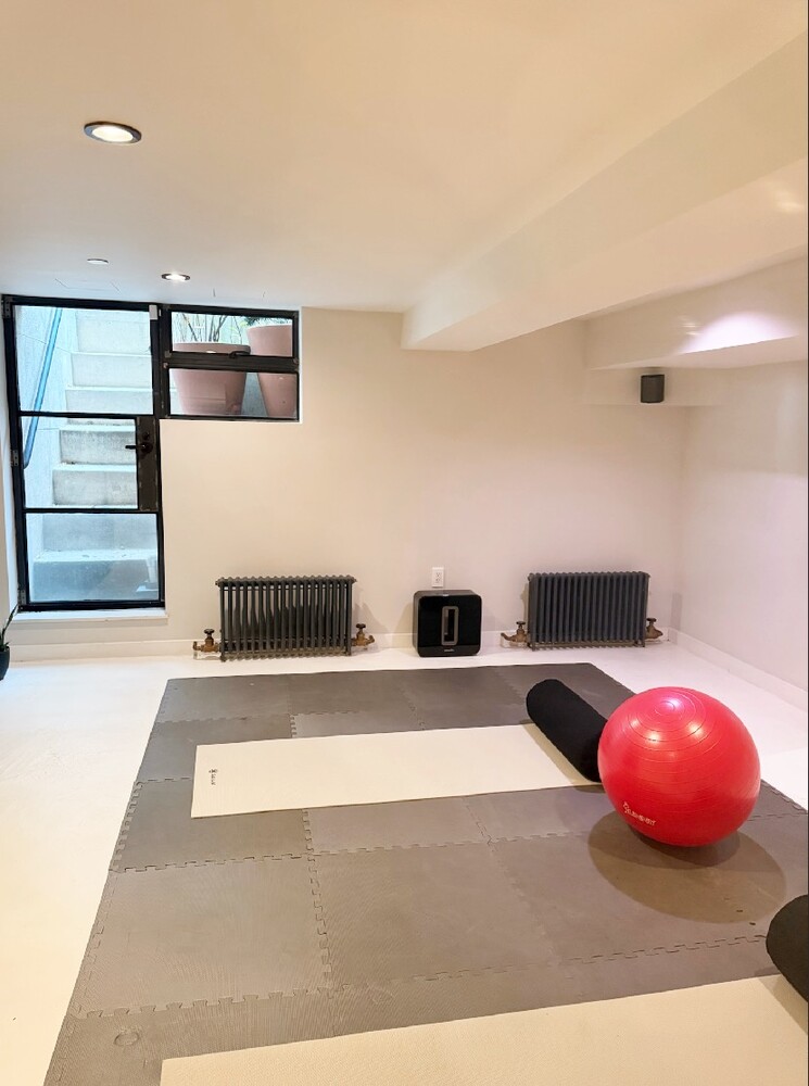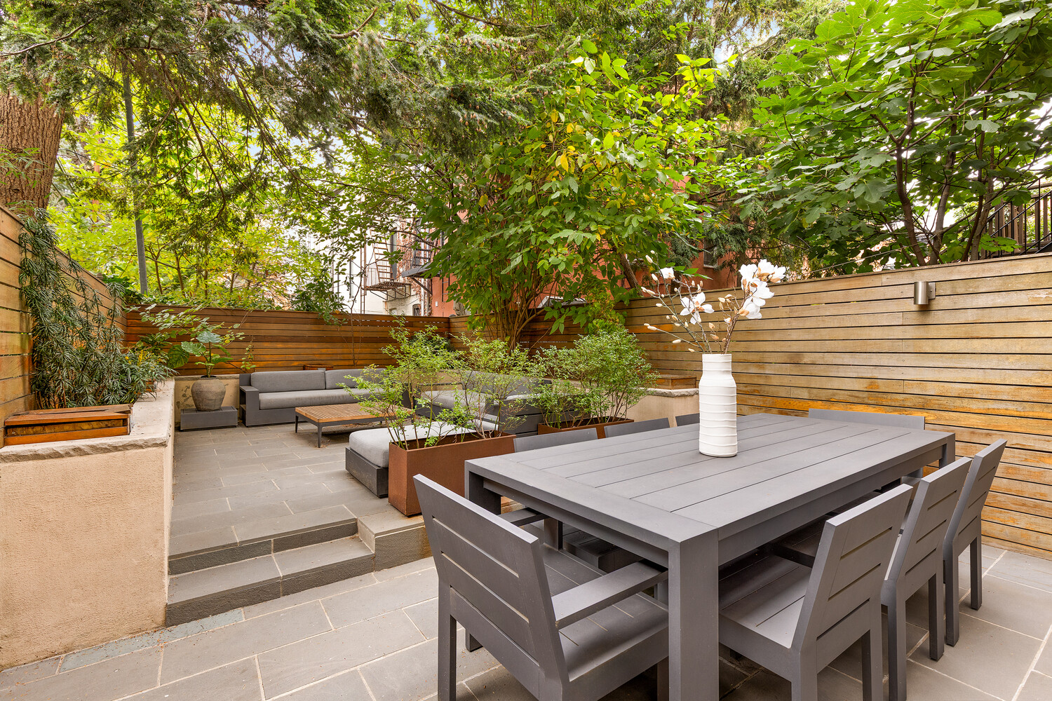 Just one flight up, a private roof deck offers sweeping views of Lower Manhattan, the surrounding neighborhood, and those unforgettable Brooklyn sunsets. The finished basement provides additional flexibility, with a full bath and a sunlit glass door to the garden. This space is ideal as a home theater, private gym, or office.