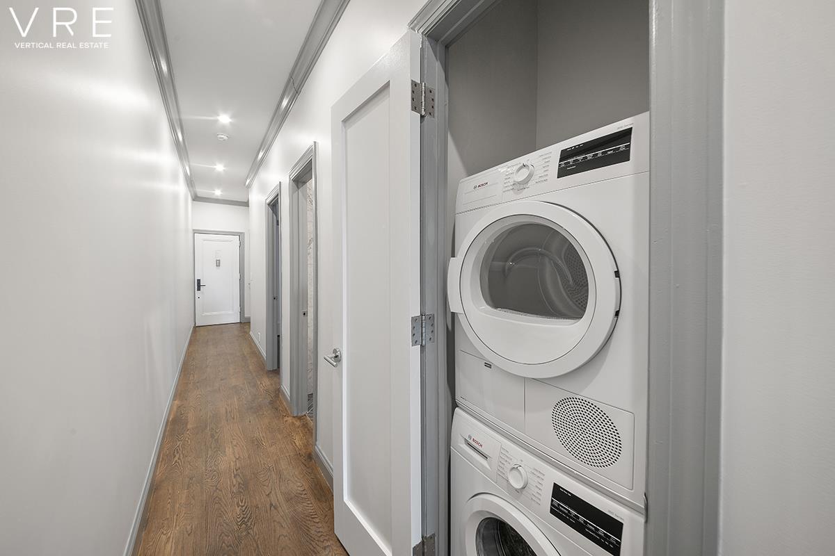 Turn of the (20th) century classic meets 21st century modern at the residences at 78 Prospect Park West. This majestic, 6-story, pre-war building offers exclusive rental apartments with either park, city, or courtyard views. With Prospect Park at your back, enter the building’s beautifully restored lobby of stained glass and marble, and take the elevator to your quintessential Brooklyn home. Ebony stained oak floors greet you from the door and into the bedrooms. The drama continues into the kitchens, with a striking contrast to stainless steel Bertazzoni appliances, chrome fixtures, and Caesar stone countertops. Step into the bathrooms with black herringbone tile pattern flooring, and luxuriate in deep soaker tubs or under chrome showers from Kohler.