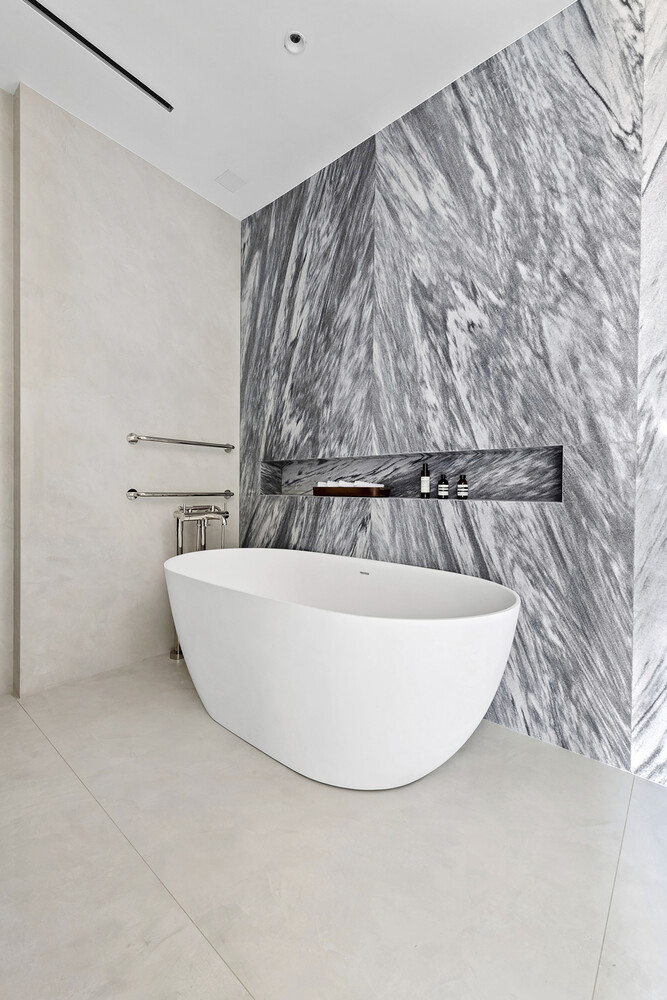 Throughout the residence, frameless flush doors create uninterrupted gallery-style walls, while discreet linear vents deliver central climate control. Every element has been thoughtfully considered, showcasing a balance of modern aesthetics and understated indulgence.