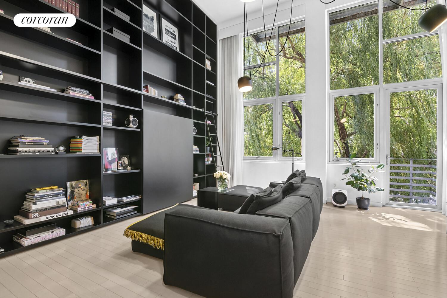 Discover the quintessential Williamsburg Loft in the heart of the Northside. This exceptional 3-bedroom, 2-bath duplex loft encompasses 1,505 square feet of artfully designed space, seamlessly blending distinctive architectural elements with contemporary finishes. Soaring 15-foot ceilings and expansive, sun-drenched windows create an ambiance of generous volume and luminous ambiance, epitomizing loft living, all complemented by an expansive balcony surrounded by lush greenery and an underground private parking spot with EV charging station.