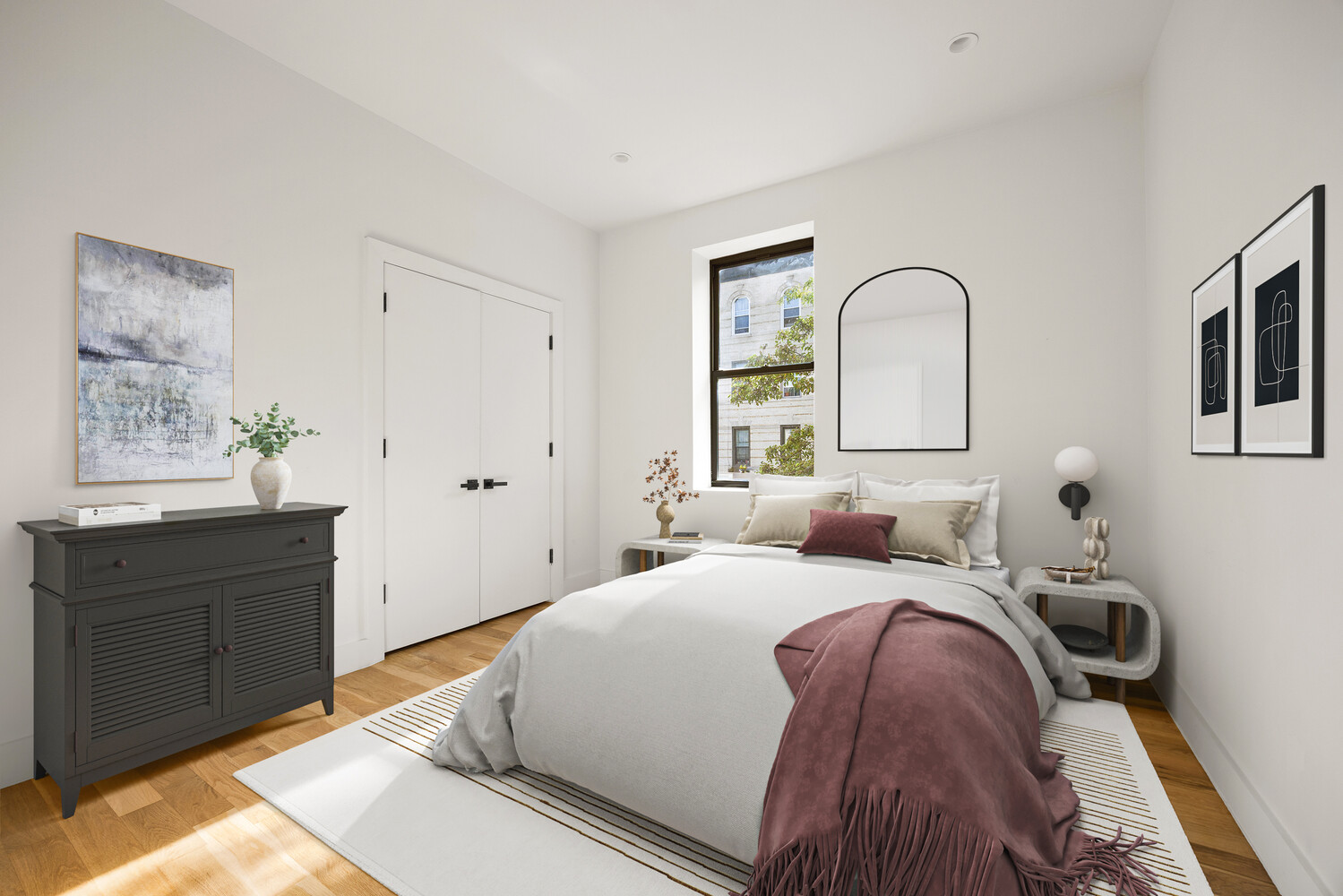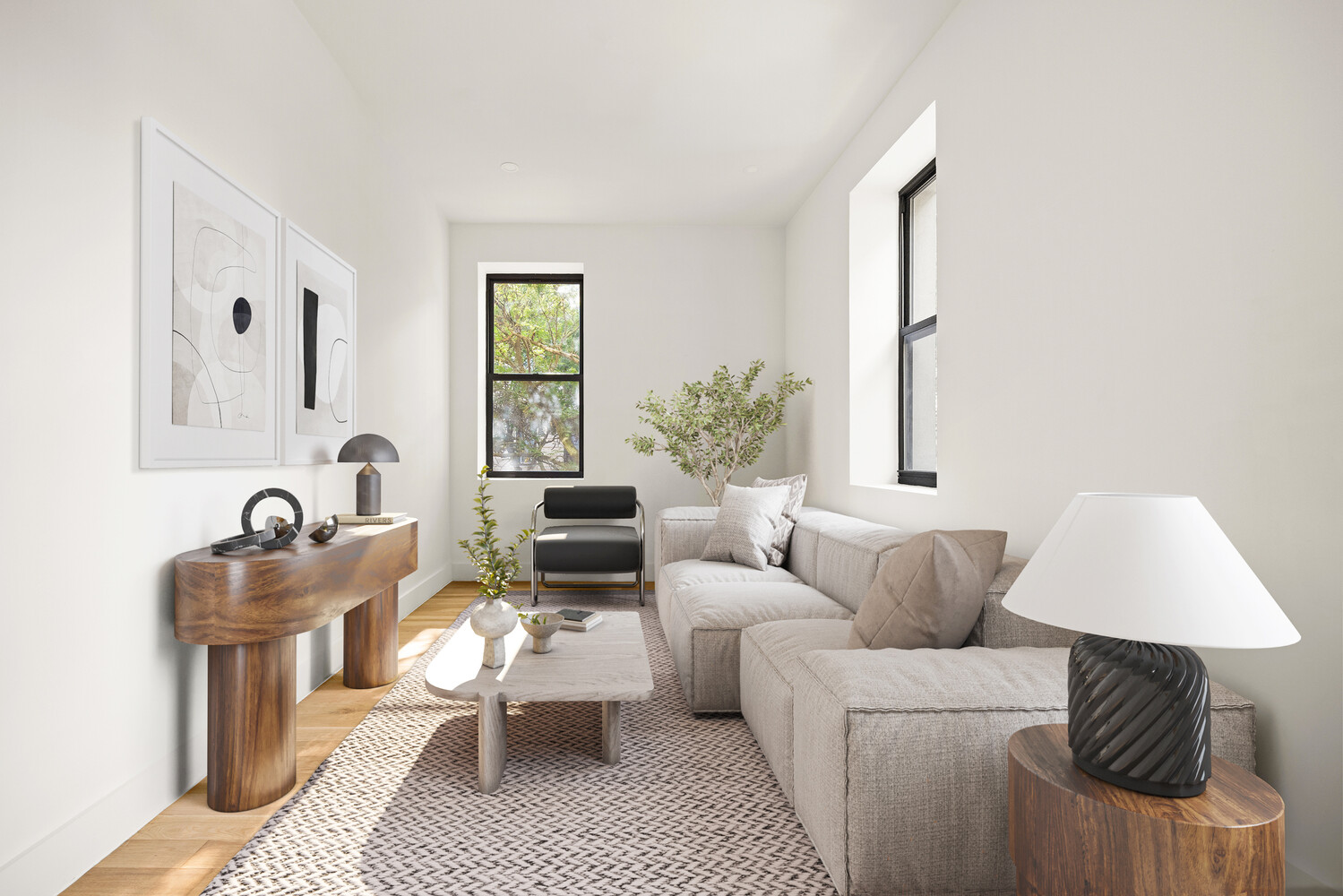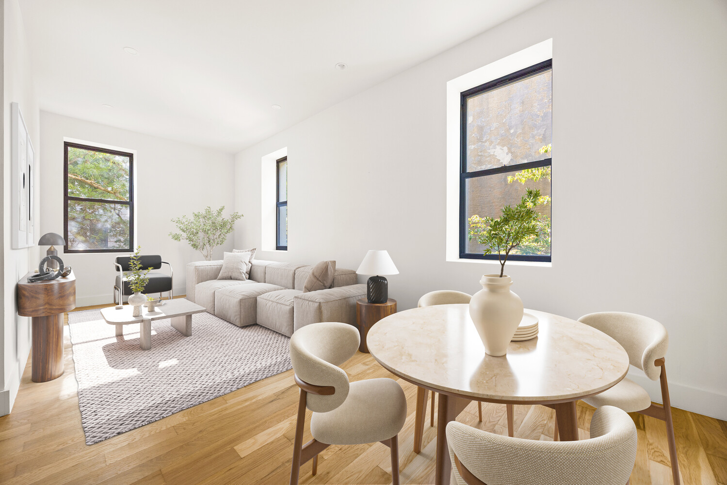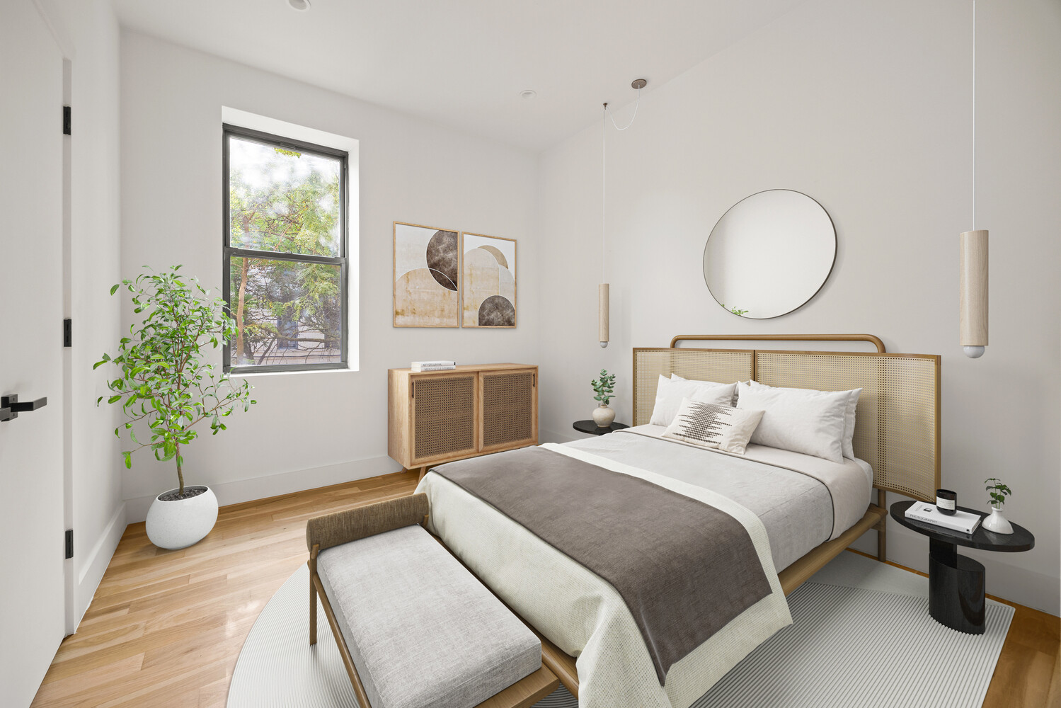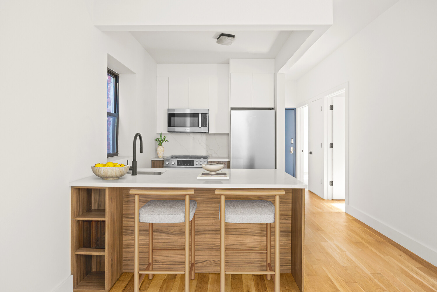 Residence 2R at 1474 Bushwick Avenue is a bright and inviting two-bedroom, one-bathroom home offering 857 square feet of well-considered living space in the heart of Bushwick. With six oversized windows and corner exposures to the southeast, northeast, and southwest, the residence enjoys natural light at every hour of the day. Every resident also has access to a shared roof deck-an inviting space to relax, entertain, or take in the city.
