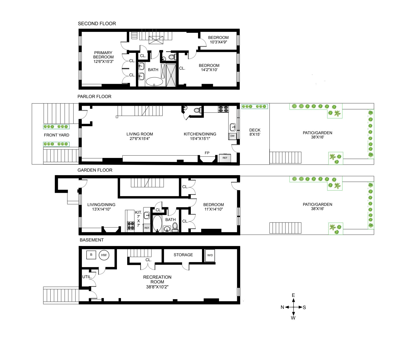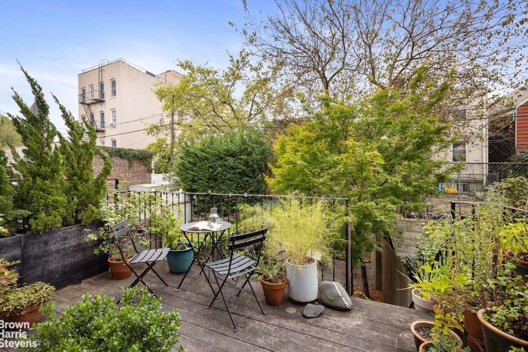 The deck, off the rear of the parlor level, is planted lush and green. It is a wonderfully serene place to dine al fresco. Steps lead down to the rear garden. Its patio is beautifully clad in bluestone pavers and there are well-established planted areas.