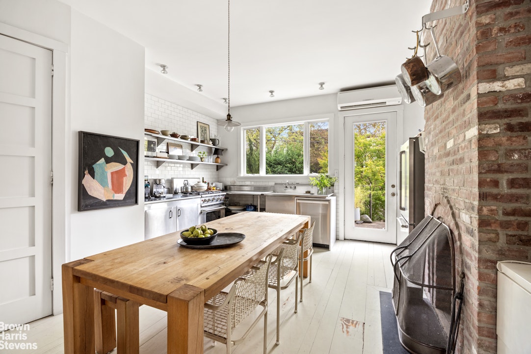The parlor level is stunning, open, light and airy. It showcases a smart mix of modern design and restored original details. Custom millwork adorns one wall -- offering stylish storage galore. A divine layout, with room for two seating areas and a large dining area. The home’s open kitchen is on the parlor as well. It is expansive with top-of-the-line, stainless steel appliances. A row of rear windows lets the afternoon sun stream in. A wood burning fireplace on this level amps up its charms. There is also a powder room on this level.