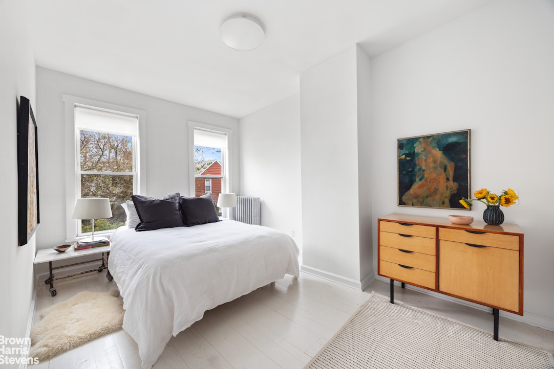 The top floor houses three, sun-drenched bedrooms and a luxuriously appointed bathroom. The WC is accessed separately from the hall for the household’s convenience. The owners have retained exclusive use of the finished basement. It is accessible from the main hallway stairwell and also has its own entrance from the street. It is a large, open rec-room, that could use used any number of ways. It is currently set up as a family room with an exercise area, and a large laundry/storage area. There are additional closets on this level as well. The garden floor is currently used as a 1BR rental. It was renovated, with a new kitchen and bath, in 2021. It is expected to be vacant as of December, 2025.