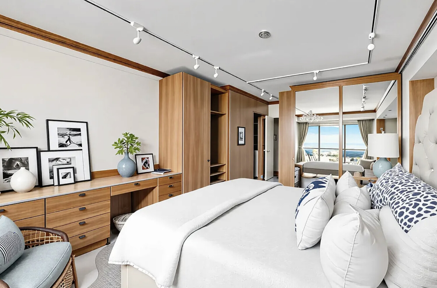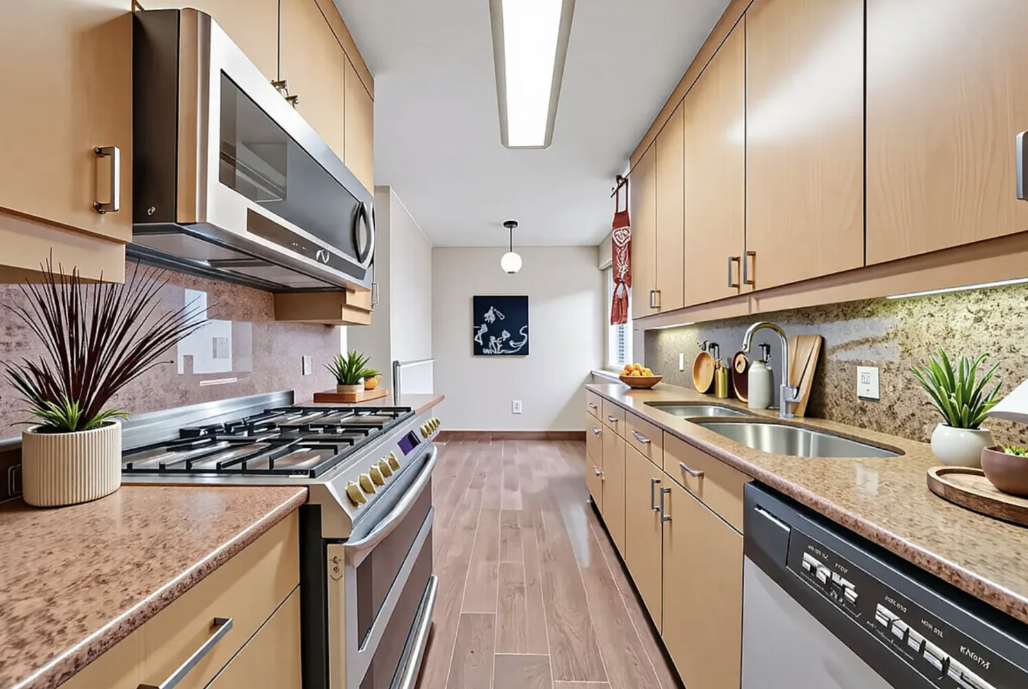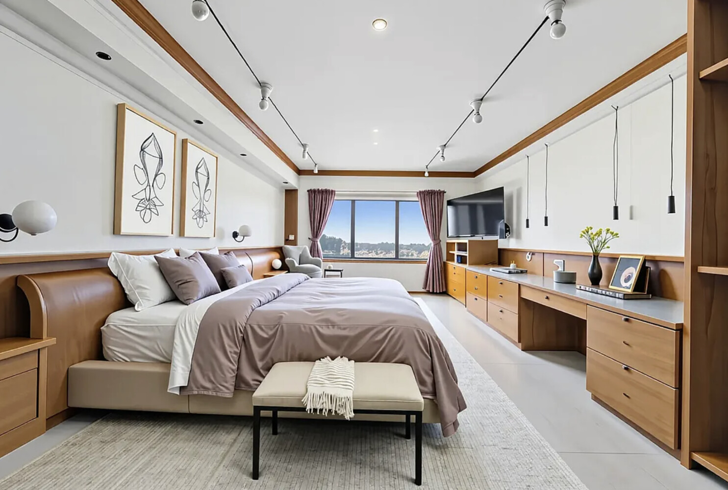 The final set of photos have been digitally rendered with AI to showcase potential design updates. While the apartment's original foundation and architectural details remain, these images highlight how the space could be modernized.