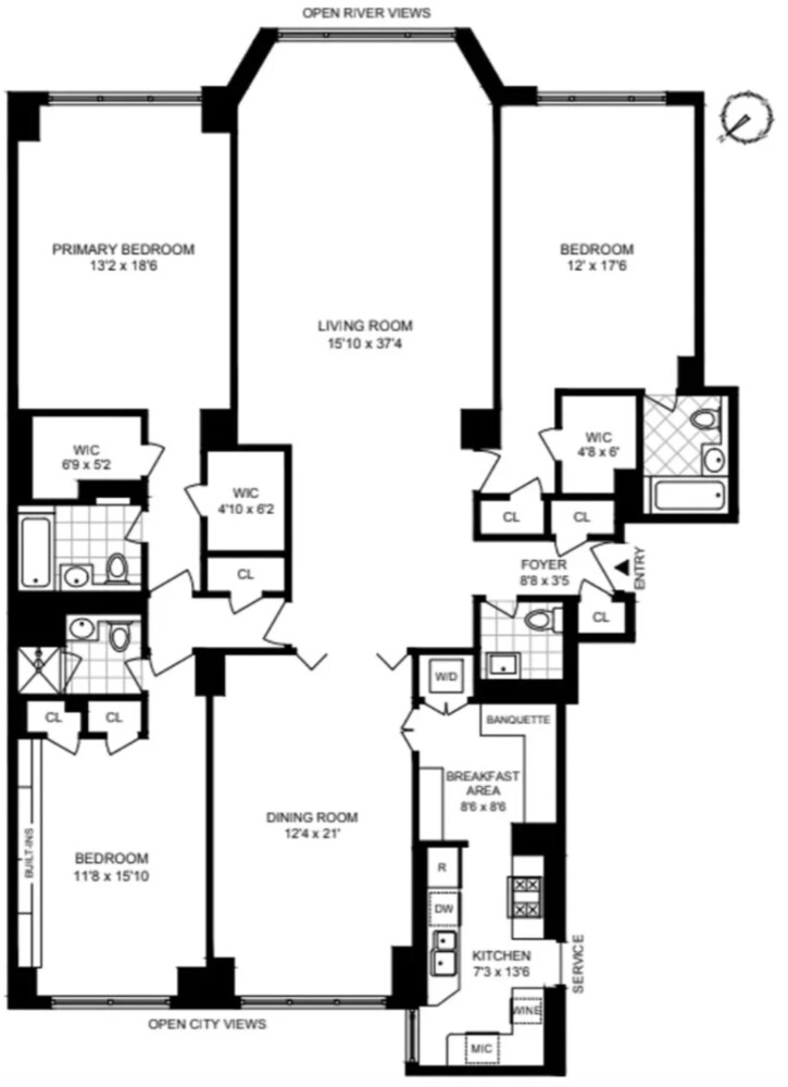 Perched on a high floor, Residence 27B at 60 East End Avenue offers sweeping East River and city views through oversized windows that flood the home with natural light. This spacious and thoughtfully maintained 3-bedroom, 3.5-bathroom co-op features an expansive living and dining area ideal for entertaining, alongside three well-proportioned bedrooms and ample closet space.