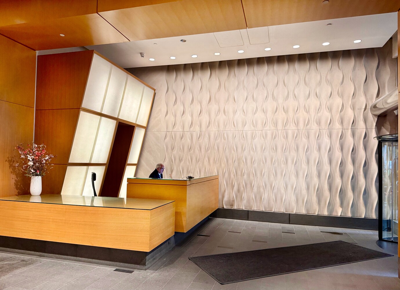 Set on the 18th floor, this beautiful 900 sq ft 1 bedroom 1.5 bathroom residence boasts direct views of Rockefeller Plaza through floor to ceiling windows and two corner exposures. The desirable layout makes it the building's most sought-after and consistently top-performing one bedroom.  The interiors feature sophisticated finishes, a marble primary bath, generous closet space, and the convenience of an in-unit washer/dryer.